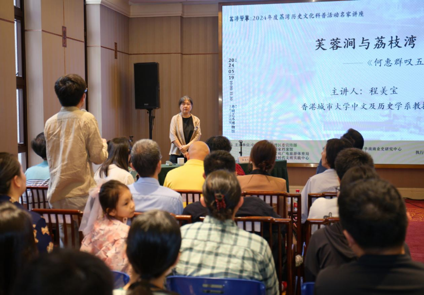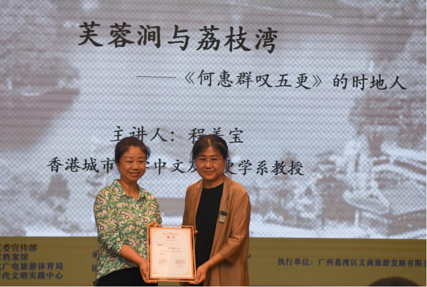 本期讲座主讲嘉宾是程美宝教授,她是香港城市大学中文及历史学教授、广东省高等学校珠江学者特聘教授(中山大学)。讲座主题为“芙蓉涧与荔枝湾:《何惠群叹五更》的时地人”,是程美宝教授的最新研究。活动上举行了荔湾历史文化研究专家的聘请仪式,为程美宝教授颁发聘书。