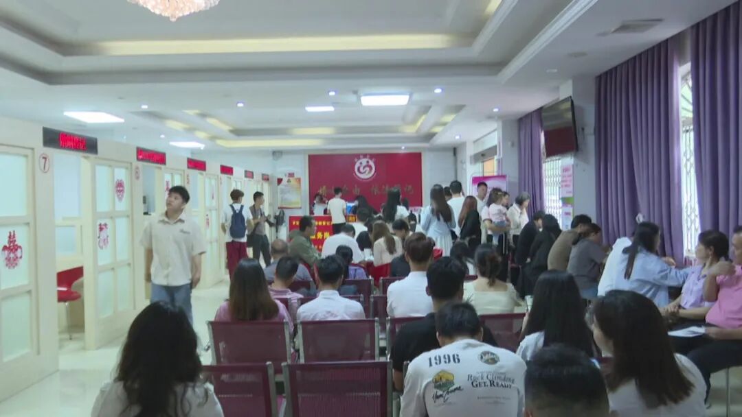 今天是5月20日,谐音“我爱你”,恰逢小满节气,寓意幸福美满,成为新人们青睐的结婚登记日,罗定市民政局婚姻登记处迎来登记小高峰。