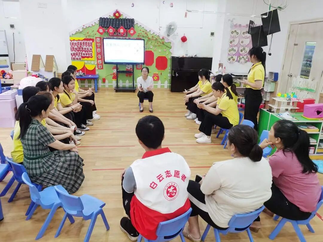本次活动特邀来自广州白云心理医院的国家婚姻家庭治疗师、中级社工师李威旋担任带领者,活动伊始,李老师通过与幼师们亲切互动,引导大家共同探讨压力的来源和表现,幼师们纷纷分享了自己在工作中遇到的困惑和挑战,李老师为大家分享了各种常见的减压方式。