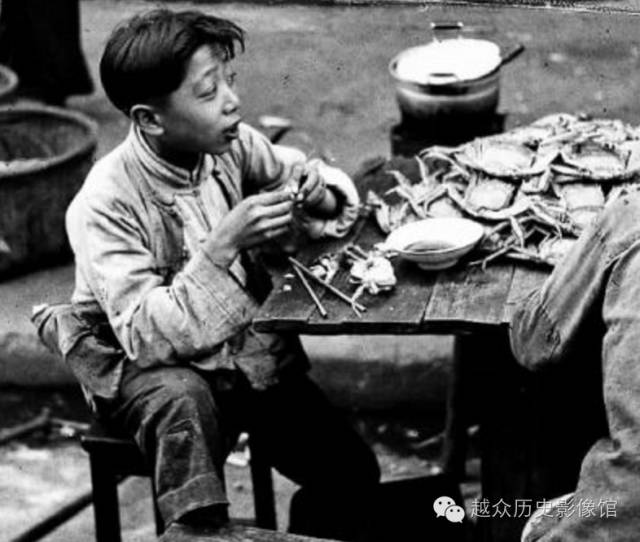 当然这张照片流传的说法是一桩大玩笑,事实上它来自Walter Arrufat的摄影集,ShangHai 1945,这小孩子不是什么贫苦人群,不过这大闸蟹可是货真价实。