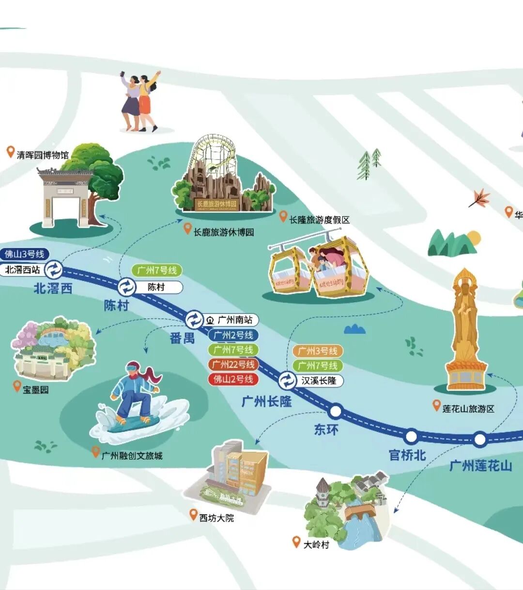 位于番禺辖区的番禺站、广州长隆站、东环站、官桥北站、广州莲花山站将助力旅客快速抵达旅游目的地,实现粤港澳大湾区“一日游”的愿望。