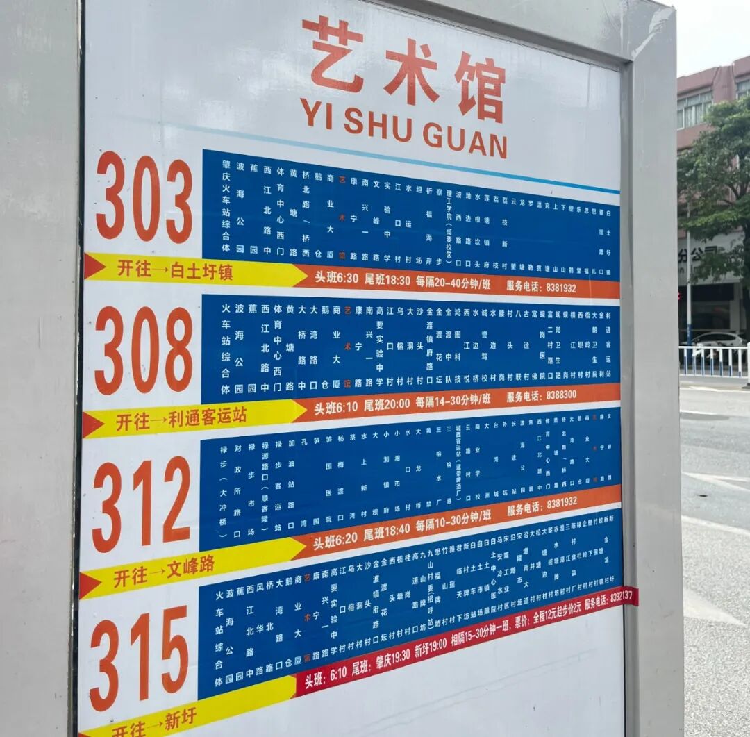 ▲ 公交303、308、315线可在高要城区艺术馆站乘坐至火车站综合体。冯楚渝 摄