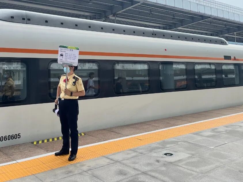 城际列车候车厅门口的红色标识、首末发车时间、C字头车票标注明显,路线指引一目了然。经过安检后,旅客便可看到候车厅、站台信息显示屏以及列车信息等,“站站停”和“大站快车”区分清晰明了,现场还有车站工作人员为旅客绑定身份证件,以及持手举牌指引,为旅客乘车提供暖心服务。
