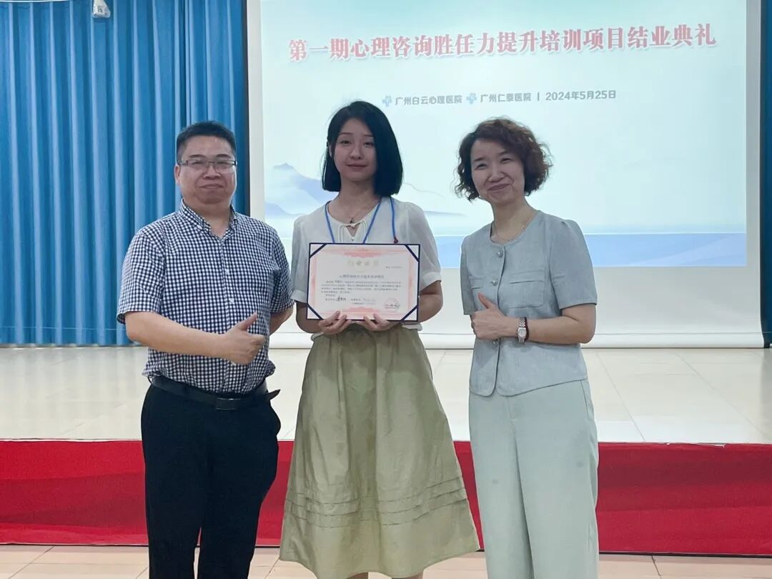 繁花五月,是生意盎然的时节,也是收获成绩的佳期。5月25日,首期心理咨询胜任力提升培训项目圆满结业!20位成员,3个月,经过75小时理论课程+25小时案例督导的咨询师胜任力专业训练,如今顺利毕业。结业典礼上,广州白云心理医院胡誉怀院长、郁辉辉导师为学员们一一颁发了结业证书,见证了学员们的学习与成长,分享着学员们的收获与喜悦。