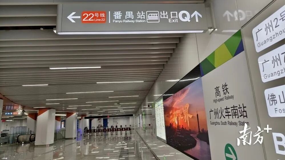 从地铁广州南站Q出口步行到城际番禺站检票口约3分钟。地铁Q出口更临近地铁22号线,如搭乘地铁2号线、7号线抵达的市民,需预留更多换乘时间,如通过地下通道换乘,建议走地铁22号线的通道步行前往。