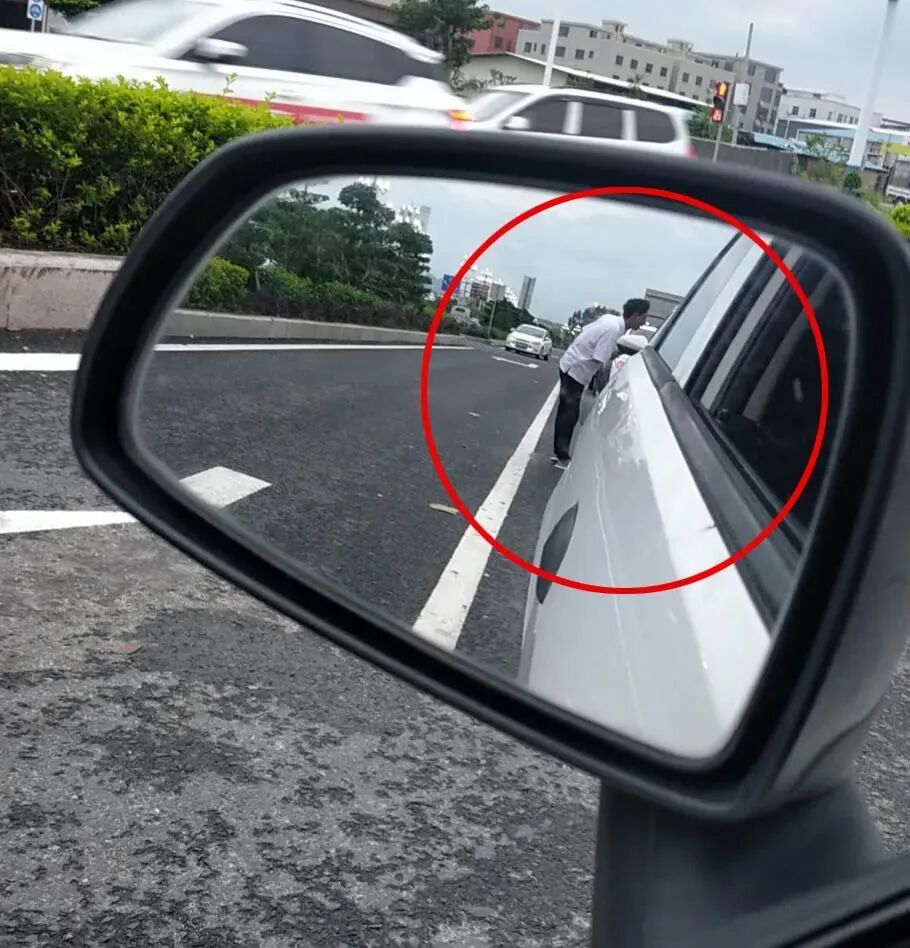 在车道内发放传单