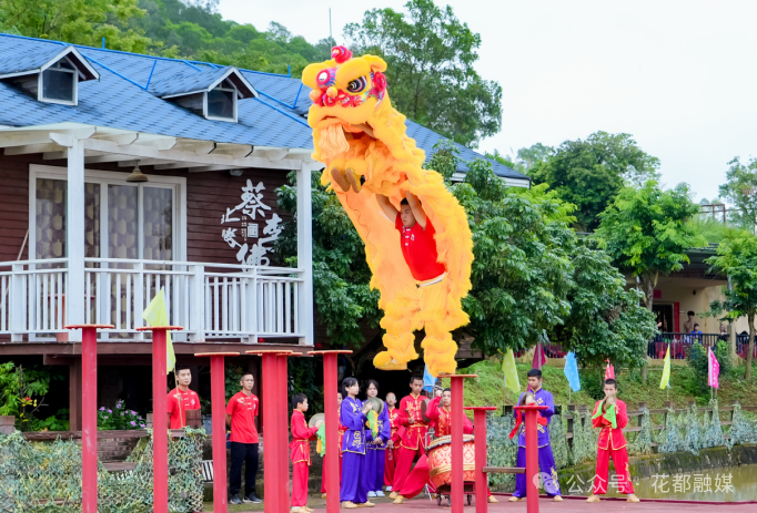 当天的活动以惊艳全场的蔡李佛水桩醒狮表演拉开帷幕,金鬃赤瞳的醒狮在高低桩柱上腾跃翻滚,不仅展现了蔡李佛拳的灵动与力度,也寓意着文化传承的生生不息与飞跃发展。