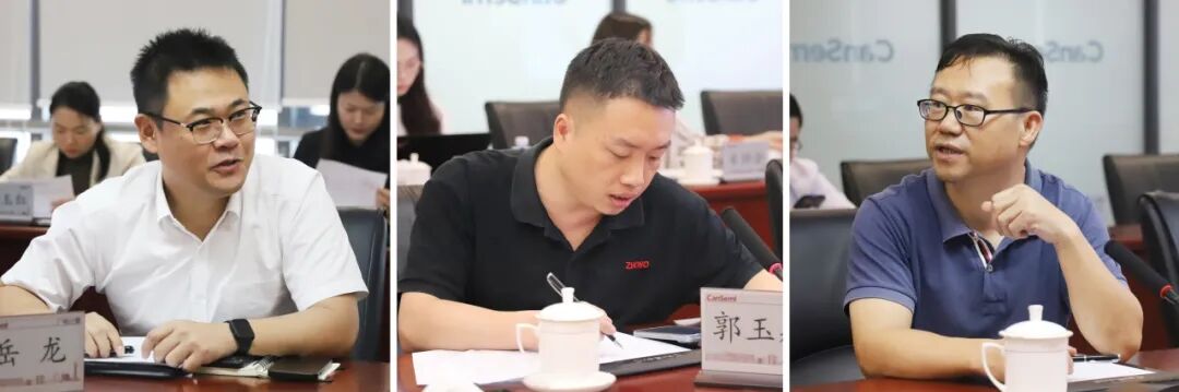 会议现场,各企业代表依次介绍了企业情况,随后粤芯市场销售部负责人与现场的芯片设计企业就产品、工艺等方面进行交流对接;粤芯采购部负责人与现场的设备、材料和检测服务企业就粤芯三期、四期及未来的相关设备采购需求与合作方向作进一步交流。浓厚的交流气氛为促进产业链上下游供需对接奠定了良好的基础。