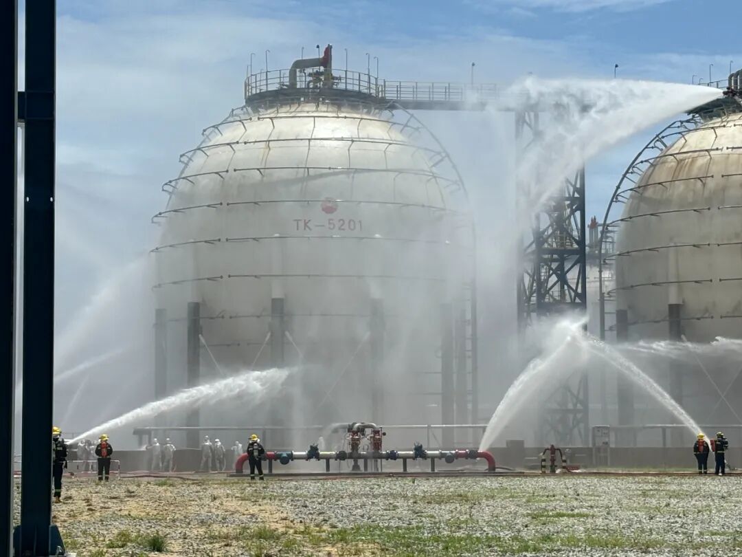 演练现场,巡检员工被突如其来的火焰烧伤,现场烟雾弥漫,火势蔓延,周边装有1万吨危险化学品的8个球罐受到威胁,处置不当将引发连环爆炸事故,现场情况十分危急……
