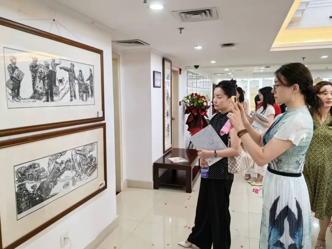 此次书画共展出作品113件,其中美术作品45件、书法作品68件,以谢永标原创版画为主,涵盖打工、军旅、非遗等多种题材,每幅作品都饱含着谢永标细腻的匠心精神,也反映出其作画目的及思想。画展还展出谢永标19位学生的国画、书法等作品。