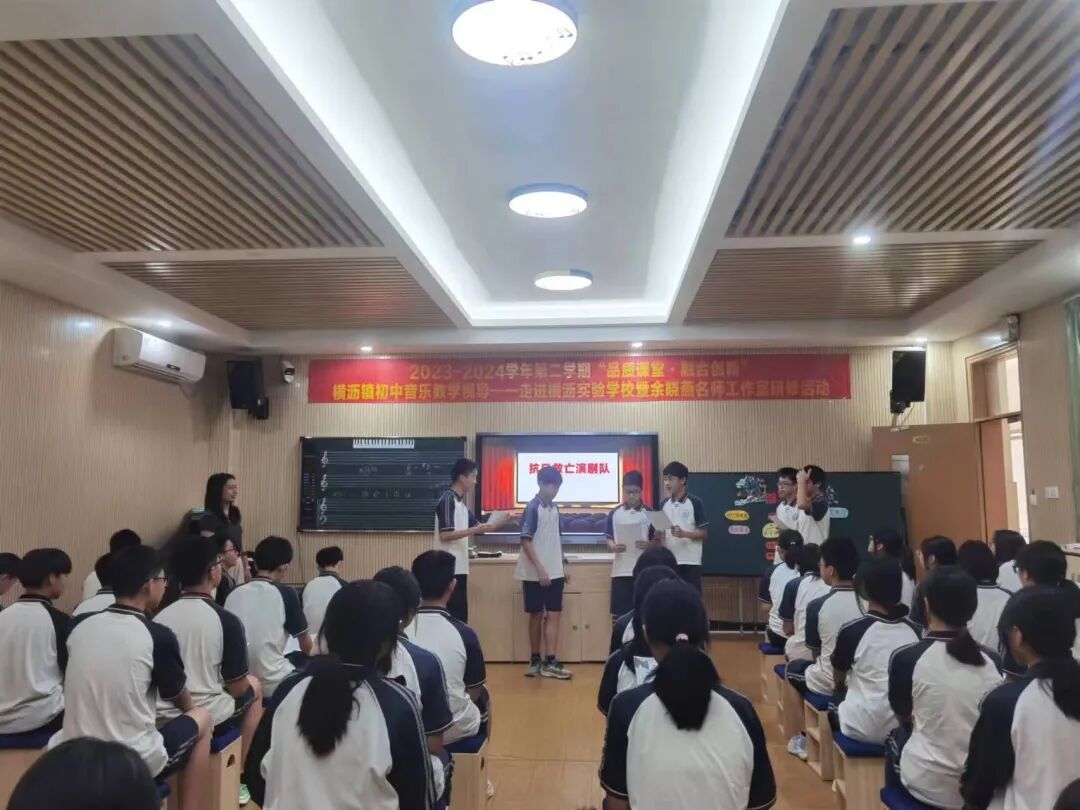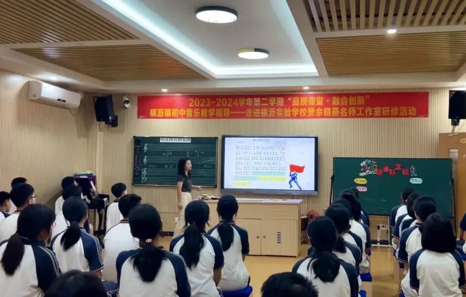 为贯彻我镇教育高质量发展理念,落实新课程标准的教学要求,加强初中公、民办学校教研交流与合作,促进教师专业化发展,提高课堂教学质量,增强“双减”实效,推进“品质课堂”建设,推动我镇教育优质、均衡发展。5月30日,横沥镇初中音乐教研员余晓燕老师组织多所兄弟学校的音乐教师齐聚东莞市松山湖横沥实验学校,开展了初中音乐“品质课堂·融合创新”教学视导活动。