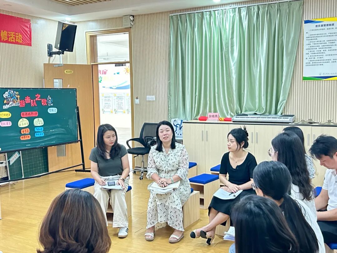 裴老师的专业素养获得了老师们的一致认可。大家认为裴老师基于学生的能力去设计教学环节,不仅能给学生带来美的体验,还能带领学生深入理解、感受和表现音乐。同时,他们也提出了中肯的建议。如提问环节可以给学生多一点的思考时间思考,老师对学生的评价要多一些。教研员余晓燕老师提出在布置任务时可以目标前置,多给学生搭建脚手架,尽量给到学生看得到的目标和评价量化表。