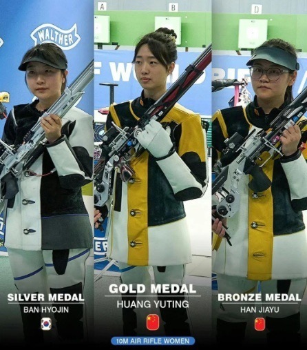 在十米气步枪混合团体金牌赛中,黄雨婷、盛李豪组成的中国队以16:4大胜挪威队,获得金牌。这是他们继上个月世界杯巴库站后,再次获得世界杯该项目冠军。另一对中国组合韩佳予/杜林澍凭借最后一枪险胜韩国组合,拿到铜牌。