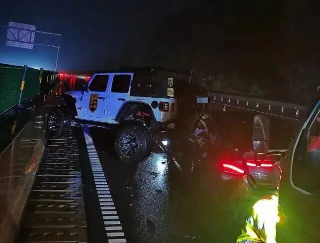 据越野车驾驶人称,其驾驶车辆行经该路段时,由于路面湿滑,车辆突然失控撞上护栏。后方两车驾驶人也都是因为是夜晚下雨,视线不佳,且未与前车保持安全车距,等到发现与前车距离过近时,已经刹不住车了。