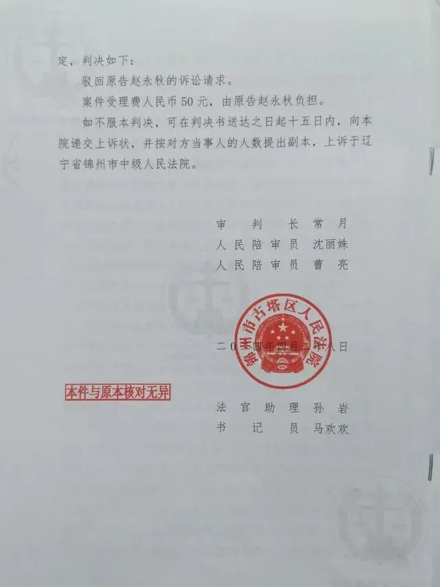 ▲辽宁省锦州市古塔区人民法院判决书(受访者提供)