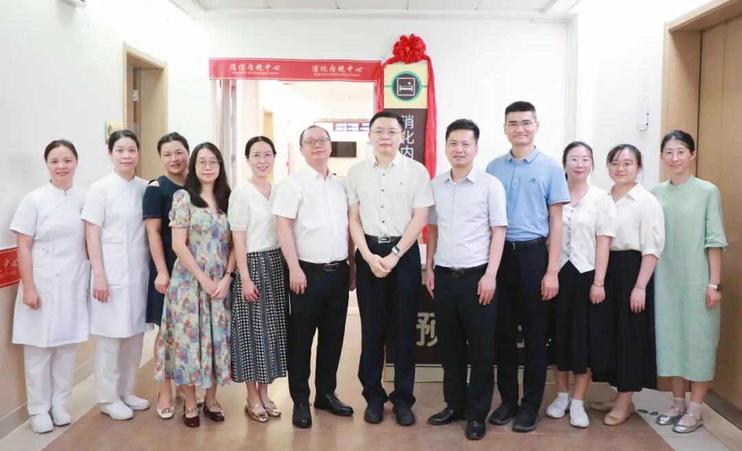 医院医务部、组织人事部、护理部、麻醉科、内四科(消化内科)等党政管理机构、业务机构负责人,以及消化内镜中心医护人员参加揭牌仪式。