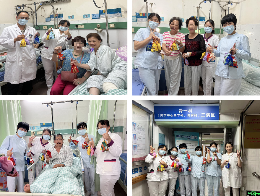 骨伤科分院骨一科(关节中心关节科、骨病科)三病区举行了“保膝护膝,膝膝相关,医护送艾,端午安康”艾草香囊赠送活动,与未能回家团聚的患者共庆端午安康。在科主任柴生颋、陈雷雷,护士长李巧萍的带领下,科室全体医护人员精心制作了一批艾草香包,每个香包都寄托着对病人们的深切祝福与关爱。医护人员们怀揣着喜悦的心情,将这份满载着情谊与温暖的礼物逐一送到每位病友的手中,并衷心祝愿所有病友们能够早日康复、重获健康的体魄与美好的生活。