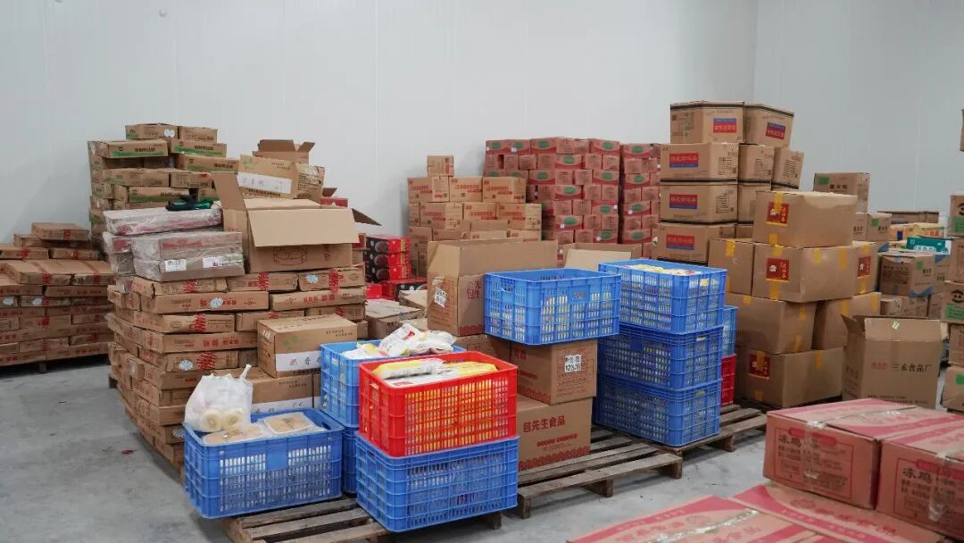 在冷藏冷冻仓库内,海鲜、蛋类、包点