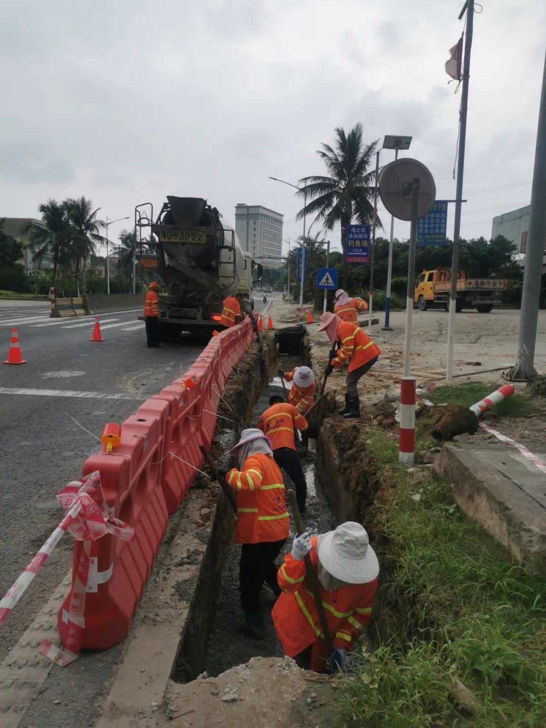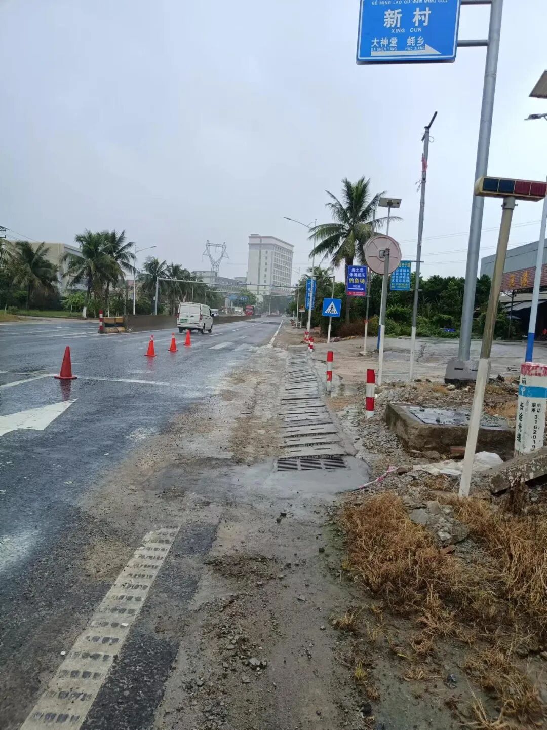 为解决该处路面积水问题,市公路事务中心市区运营部和坡头养护所对此进行仔细勘查和分析,发现该路口连接K6482+850处的涵洞进行排水的暗渠径口较小,排水效率较低,在雨天存在水涝的隐患。针对这个问题,养护工程师提出一个大胆的方案——将暗渠改造为盖板式水沟。尽管坡头养护所之前没有开展改造工程的经验,但全体职工没有退缩,而是迎难而上。在市公路事务中心的指导下,坡头养护所决定对该处进行改造。