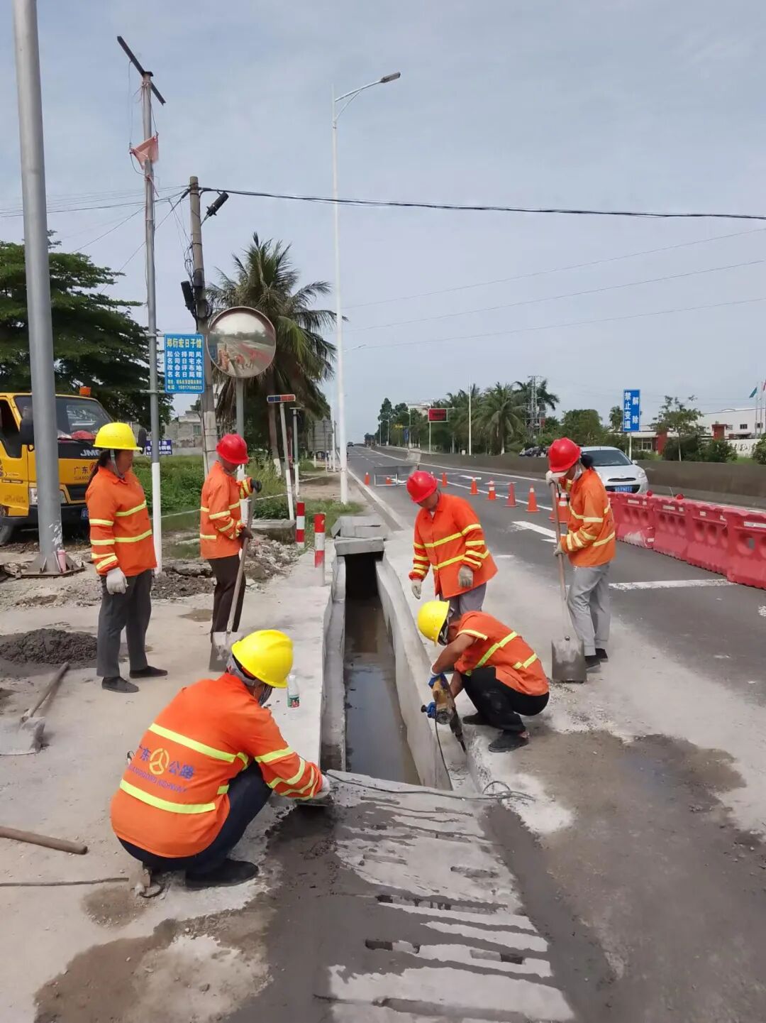 每当暴雨侵袭,国道228线K6482+850左侧官渡新村路口处容易产生积水现象,最深时可达0.2米,成为过往车辆和行人的“拦路虎”。因此每逢雨天,坡头养护所一线工人都会严阵以待,撸起裤脚,卷起衣袖,在现场疏通水沟、清理杂物以提高路面排水效率,并协助指挥来往车辆。