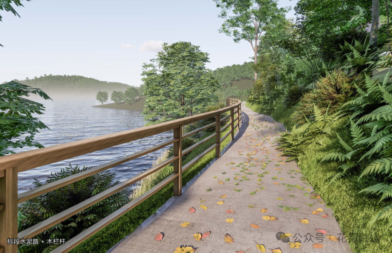 ▲九龙湖生态度假区环湖步道效果图(上)及景观设计概念图(下)