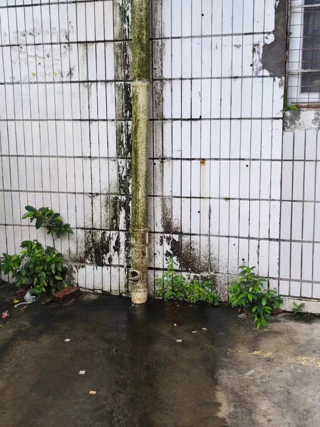 日前,新塘社区网格员在辖区网格微信联系群收到桥新一路附近一商铺店主求助称,因其店铺隔壁工厂排水管损坏,导致其店铺门前长期积水并长有青苔,来往客人险些滑倒。