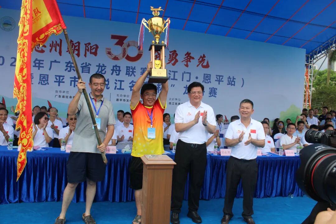 最终,技高一筹的横陂队夺得镇街组比赛的冠军,获得一万元奖金。据悉,横陂镇队由元山村队代表参赛,该村拥有悠久的龙舟传统文化,其端午节举办的“池塘龙舟赛”驰名恩平。另外,恩城、圣堂和恩平体育学校队分获二、三、四名,并分别获得6000元、3800元、2800元的奖金。