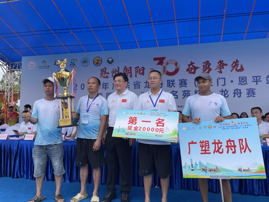 而公开组的赛事则有12支大湾区的队伍参赛,分别来自广州、深圳、佛山、东莞、珠海、惠州、肇庆等城市。经历激烈的小组赛、复赛、半决赛,最终鹤山广塑龙舟队、九江汉晟家居龙舟队、东莞麻涌大步龙舟队和惠州兄弟连队4支队伍进入决赛,实力突出的鹤山广塑龙舟队最终脱颖而出,夺得冠军。“恩平市本次赛事组织得非常成功,我们参赛者感到十分满意,希望以后能够再次来到美丽的锦江参加龙舟赛。”鹤山广塑龙舟队的唐东明为赛事点赞,该冠军队伍除了获得奖杯,还斩获2万元的奖金。