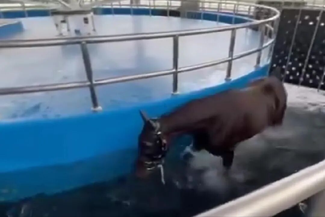 据报道,练马师韦达日前再度亲赴从化,视察旗下马匹。他在社交平台分享了爱驹在从化使用水中行马机的视频,并大赞这个崭新练马设游对马匹的训练起了正面的作用。