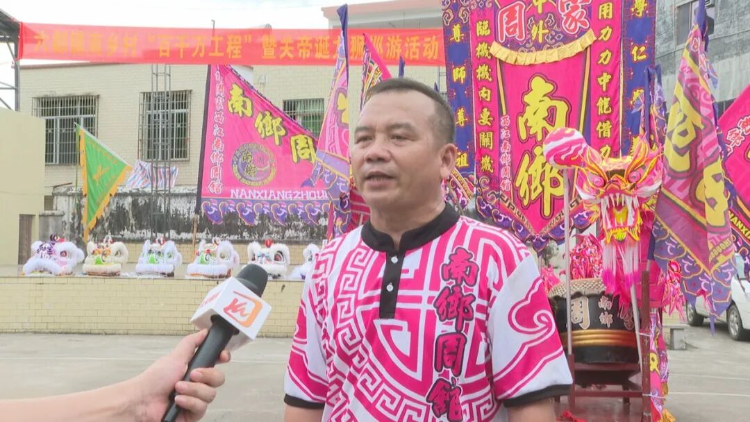 南乡周馆教练 杜伟平:我们举办关帝诞龙狮巡游活动可以弘扬本土优秀传统文化,共叙乡情,同时通过民间欢乐节也凝聚了村民和外出乡贤的力量,参与家乡各项事业建设,助推乡村振兴。