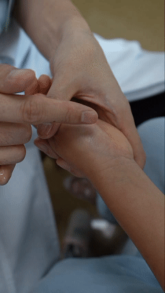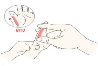 板门在手掌大鱼际平面。用拇指在其中点上做揉法约300下。