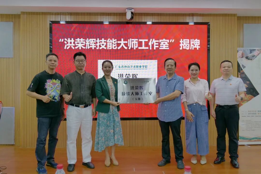 据了解,广外艺历来重视岭南非遗活化创新,积极培养学生创新创意思维和实操能力,2010年开设玉器设计与工艺专业,并在校内搭建玉文化数字展览馆、玉雕实训室、陶艺实训室及创意坊等实训室。在共同参与种子计划的契机下,广外艺与洪荣辉就专业发展及人才培养达成长期合作,创立洪荣辉大师工作室,并现场举办洪荣辉大师工作室揭牌仪式。