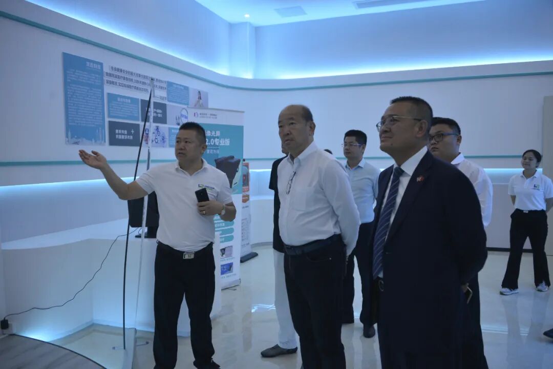 考察团参观了龙健产业园的多功能展示厅,详细了解了产业园的规划建设、产业布局、企业发展、市场定位等情况。他们对产业园的科技创新能力和产业发展速度给予了高度评价。