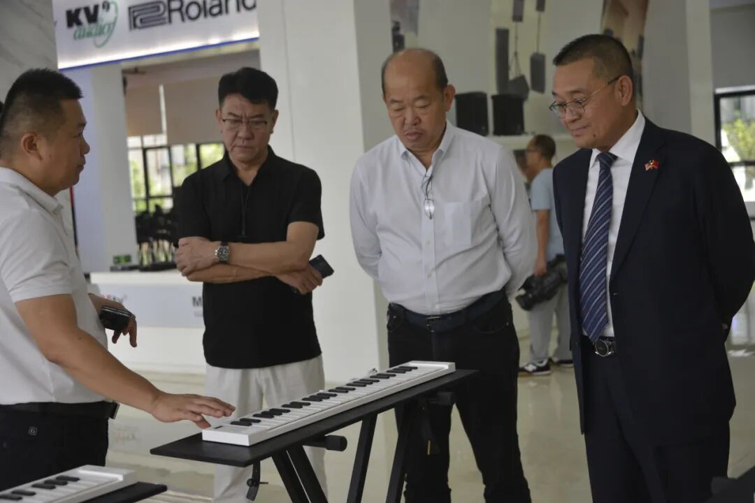 周兴光首先对考察团的来访表示热烈欢迎,并详细介绍了龙健高新产业园的发展情况。他表示,龙健高新产业园以科技创新为引领,积极培育高新技术企业和新质生产力,不断推进产业孵化,已经形成了以音视频、乐器、专业舞台灯光主导的产业集群。他强调,龙健高新产业园的快速发展,离不开科技的力量加持,也离不开党委政府、中外客商和社会各界的支持。