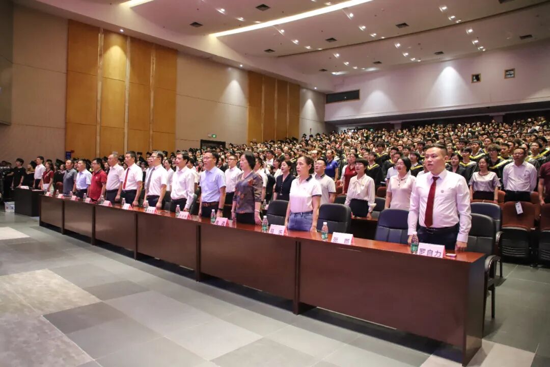 凤凰花开,骊歌唱响。6月20日,我校在学生活动中心隆重举行2024年毕业典礼暨学位授予仪式。校领导杜小明、苏成、周诗瑶、刘洊波、尚启超、魏德敏,各学院院长、书记,机关部处负责人及教师代表、辅导员代表、2024届5000余名毕业生、2020届、2021届、2022届毕业生代表及部分毕业生家长等出席典礼。典礼由副校长周诗瑶主持。