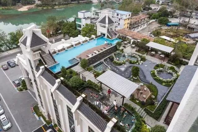 圣托利温泉庄园占地30000多平方米,内有装修风格各异的房间100多间,每间房间都带有私家独立温泉泡池。庄园内还设有近50个户外温泉泡池,游泳池、儿童戏水池,以及3000平方米的冲浪池,为顾客提供种类多样、自由惬意的水上项目游玩体验。