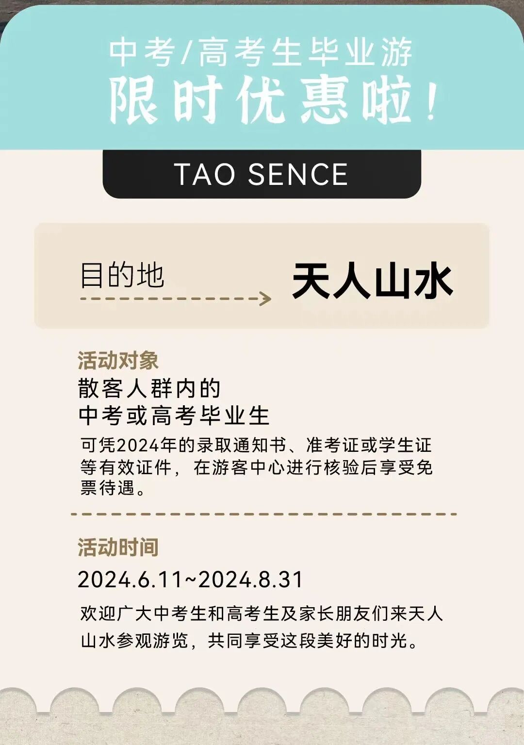 中考/高考毕业生可凭有效证件