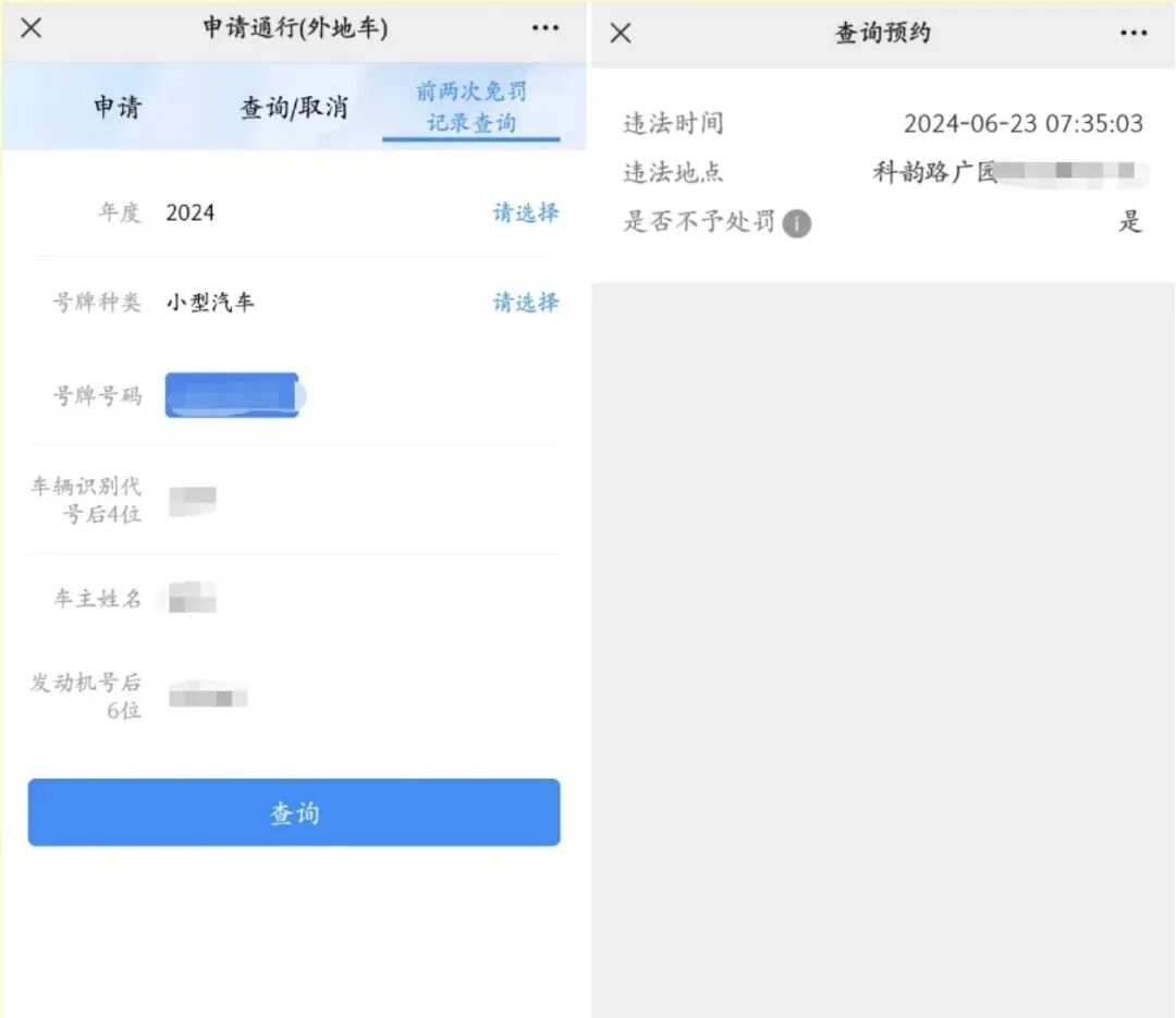 ➤➤前两次免罚记录查询: