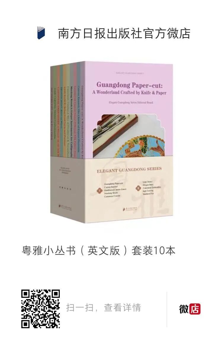 南方日报出版社以书为媒,积极开展对外传播工作,策划出版了《人文湾区·岭南三秀》丛书英文版(Three Treasures of Lingnan Series)、《粤雅小丛书》英文版(Elegant Guangdong Series)等英文图书,旨在让更多国外读者感受岭南艺术的独特魅力,促进不同文化之间的交流互鉴。