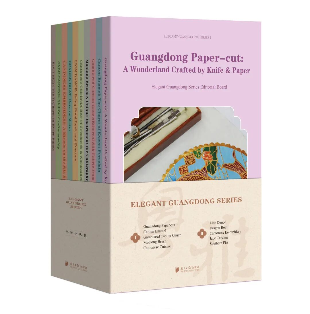 其中《粤雅小丛书》英文版选取当下极具岭南个性活力的十种非遗进行讲述——广东剪纸、广彩 、香云纱、茅龙笔、粤菜、醒狮、龙舟、广绣、玉雕、南拳。旨在为遍布世界的华人华侨带来文化的滋养和情感的维系,为爱好中华文化的国外读者介绍岭南非遗文化,让他们在阅读中真切感悟到中国精神、中国价值、中国力量。