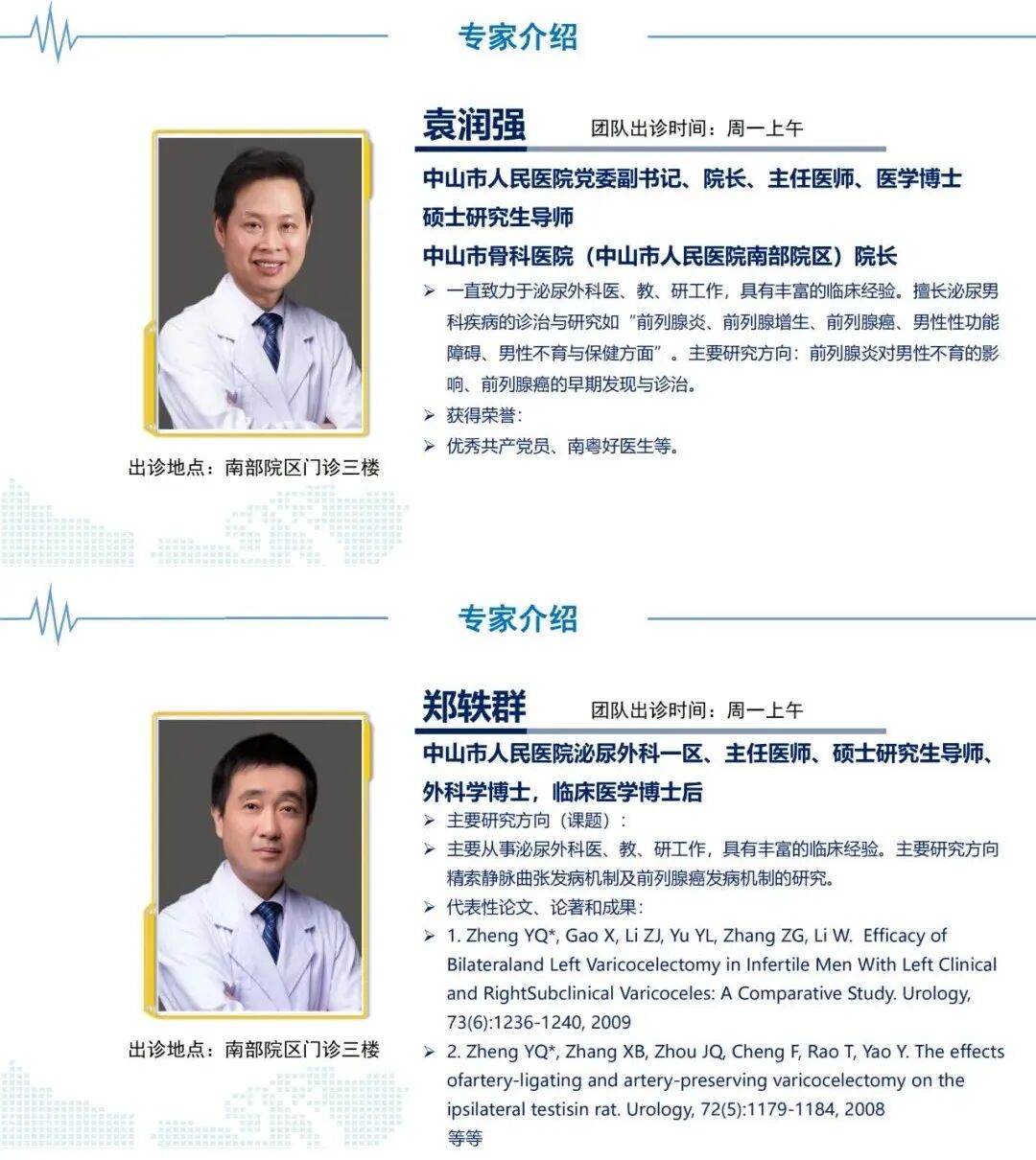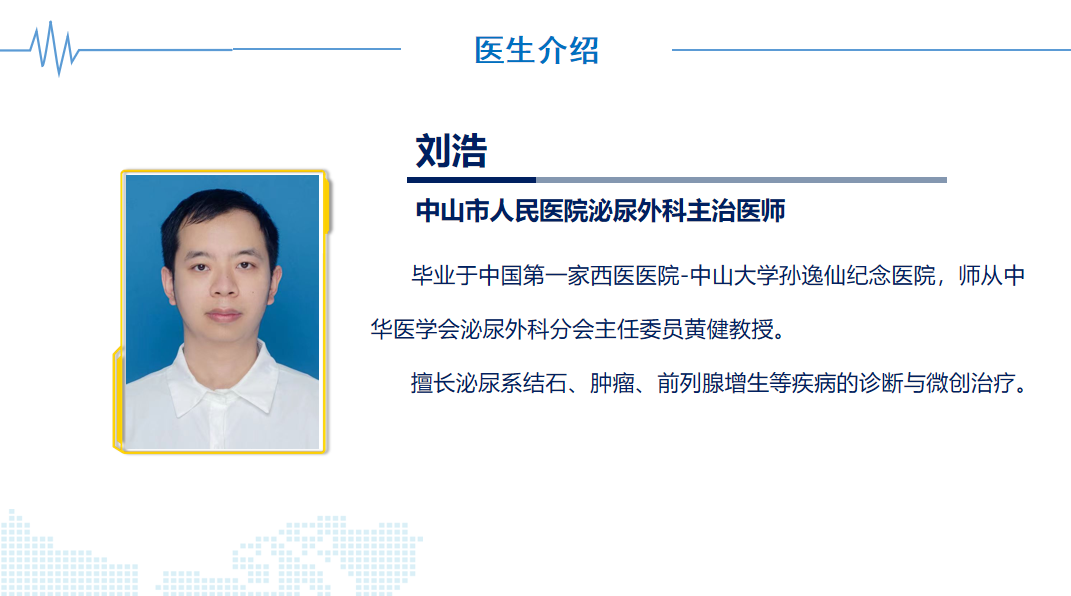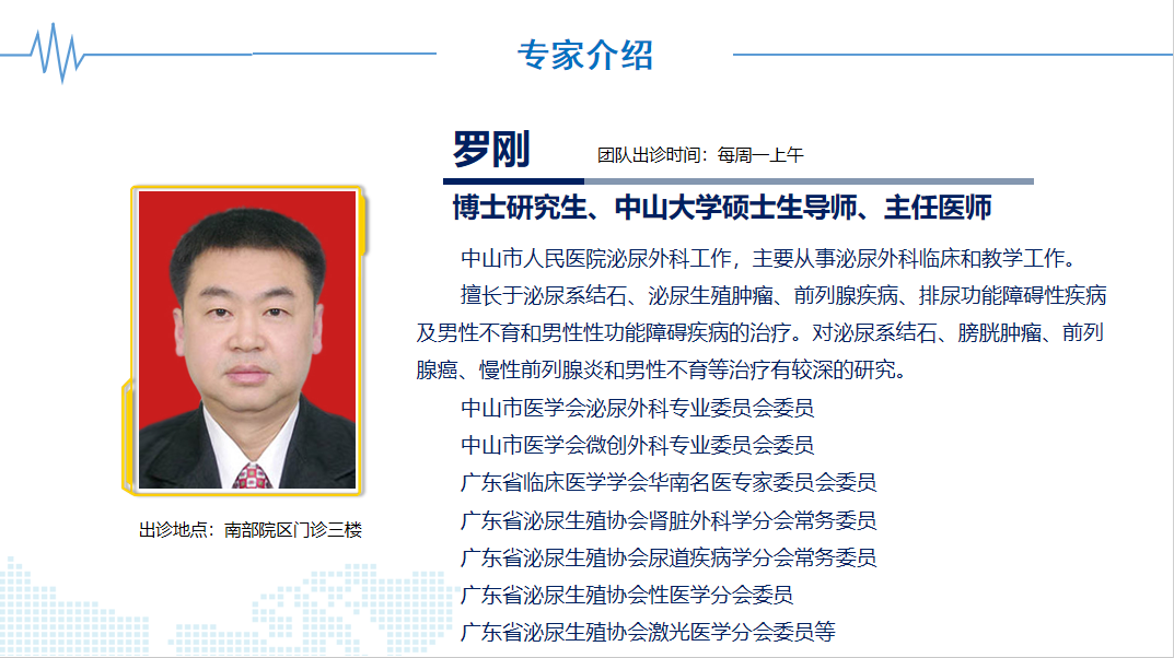 本院泌尿外科形成了以微创治疗泌尿系肿瘤、泌尿系结石、前列腺癌、前列腺增生、前列腺炎、男性性功能障碍、男性不育与保健、腹腔镜泌尿系肿瘤的根治、泌尿系畸形、复杂性肾结石以及泌尿系疑难杂症为主要特色的高水平特色专科,为广大患者提供更精准更专业的高水平微创诊疗技术服务,确保老百姓在家门口即可享受到中山市级高水平医疗服务。