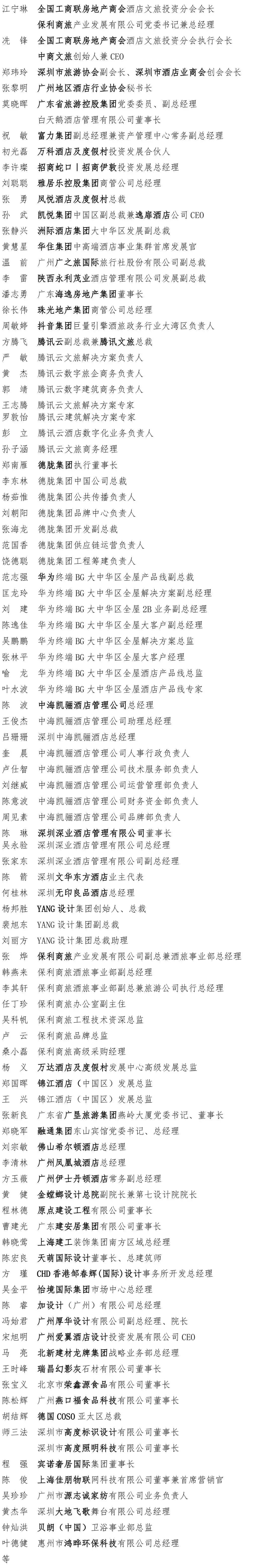 左起: 潘志勇(海逸)、黄慧星(华住)、张勇(碧桂园|凤悦酒店及度假村)、刘聪聪(雅居乐)、祝敏(富力)、莫晓晖(广东旅控)、冼锋(中商文旅)、江宁琳(保利商旅)、温前(广之旅)、张烨(保利商旅)、张静兴(洲际)、陈逸佳(华为)、孙武(凯悦)、初光磊(万科酒店及度假村)、张黎明(广州地区酒店行业协会)