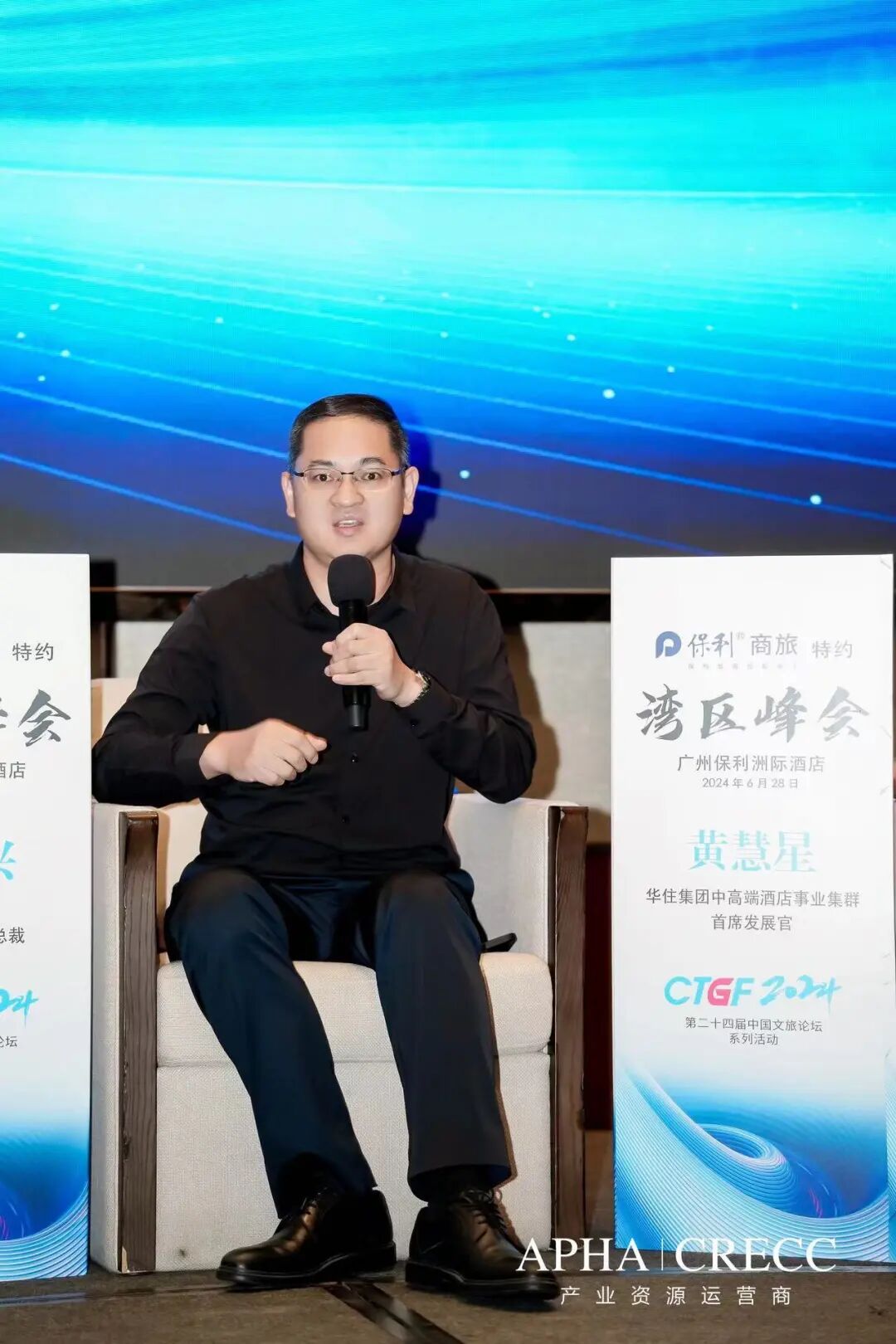 冼锋执行会长主持本场对话风云,保利商旅产业发展有限公司副总兼酒旅事业部总经理张烨、雅居乐控股集团商管公司总经理刘聪聪、富力集团副总经理兼资产管理中心常务副总经理祝敏、万科酒店及度假村投资发展合伙人初光磊、凯悦集团中国区副总裁兼逸扉酒店公司CEO孙武、洲际酒店集团大中华区发展副总裁张静兴、华住集团中高端酒店事业集群首席发展官黄慧星等参与讨论上台发言。