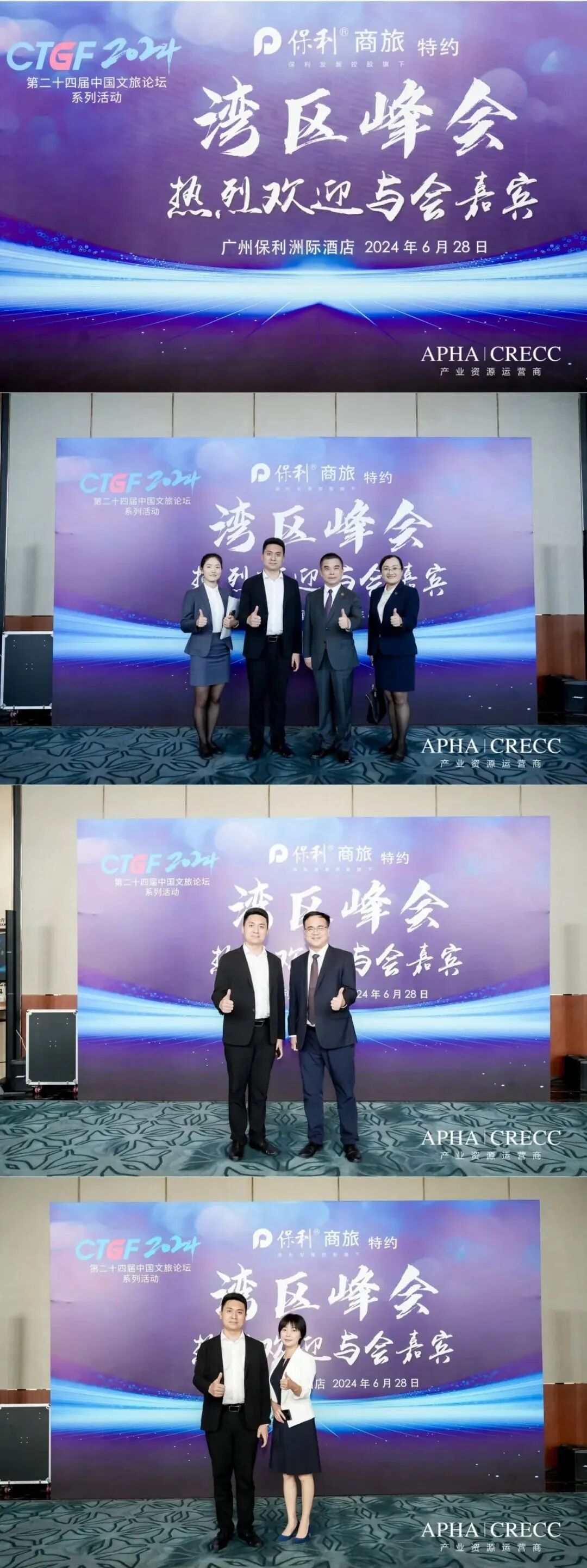 2024年6月28日下午,全国工商联直属行业商会“保利商旅”特约湾区峰会及飨宴在广州保利洲际酒店一楼翡翠厅举办,我会副会长富力集团副总经理兼资产管理中心常务副总经理祝敏女士、副会长广州凤凰城酒店总经理李清林先生、副会长广东省广垦旅游集团燕岭大厦党委书记 董事长张新良先生、副会长广州伊士丹顿酒店常务副总经理方玉薇女士,秘书长张黎明先生受邀参加了此次活动。