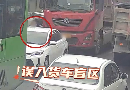 大货车正后方是全盲区,当有行人、非机动车以及机动车紧贴在车正后方,驾驶人是完全看不到的。