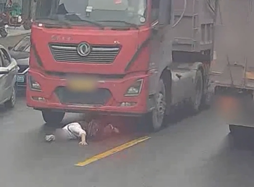 大货车突然倒车,电动自行车闪躲不及被卷入车底。