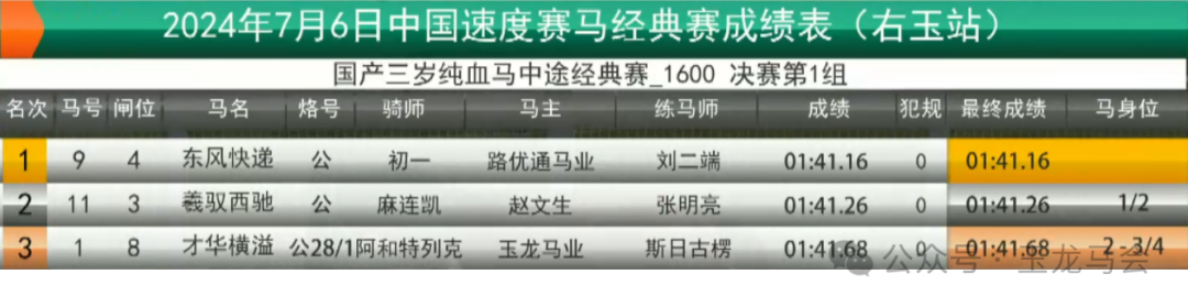 冠军:东风快递 马主:路优通马业 骑师:初一