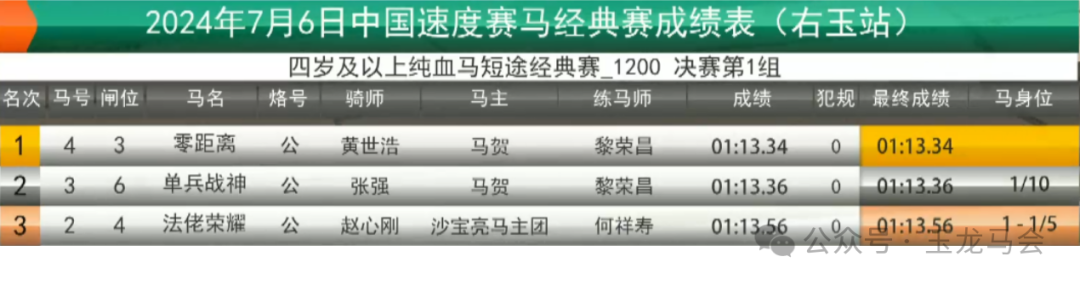 冠军:零距离 马主:马贺 骑师:黄世浩