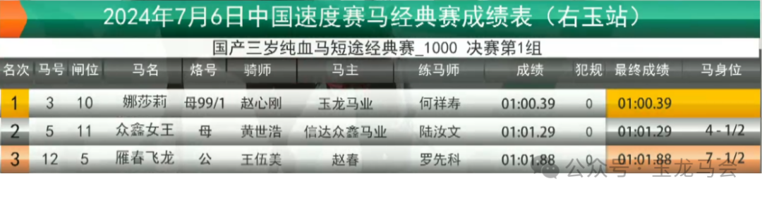 冠军:娜莎莉 马主:玉龙马业 骑师:赵心刚