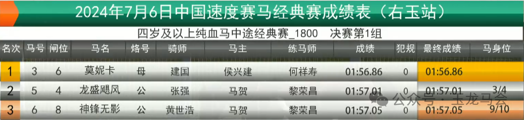 冠军:莫妮卡 马主:侯兴建 骑师:建国